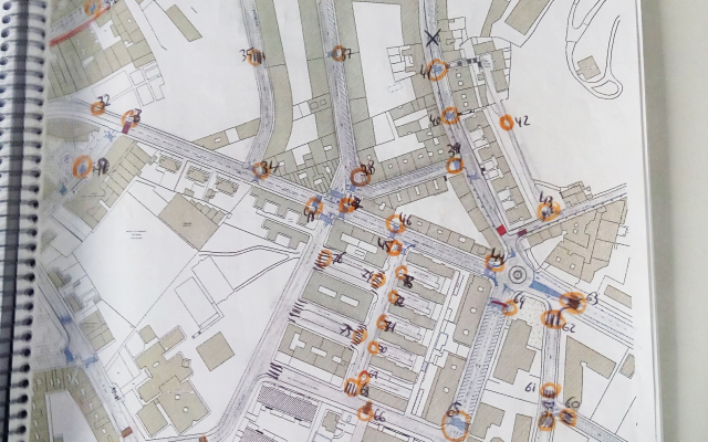 Mientras se pasea por las calles del cuadrante y según unos criterios adquiridos previamente se valoran aceras, pasos de cebra, espacios públicos…