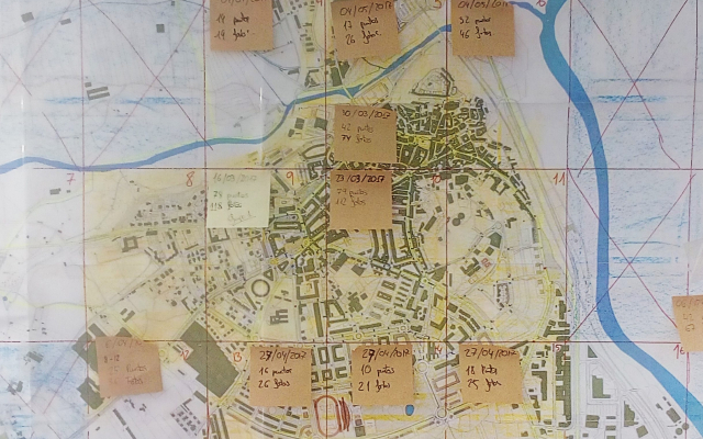 Para organizar el trabajo decidimos dividir el plano de Haro en cuadrantes que se pasan a analizar durante el trabajo de campo, observamos que había 16 cuadrantes que analizar.